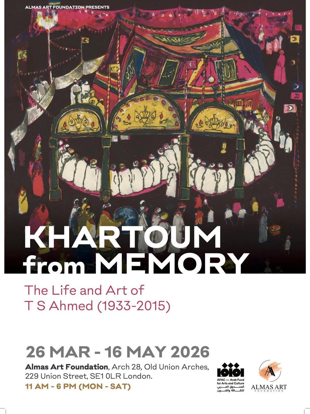 ويُقام المعرض تحت عنوان “الخرطوم من الذاكرة: حياة وفن تاج السر أحمد” داخل مؤسسة ألماس للفنون، خلال الفترة من 27 مارس إلى 16 مايو 2026، حيث يفتح أبوابه يوميًا من الاثنين إلى السبت، من الساعة العاشرة صباحًا حتى السادسة مساءً.