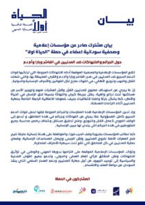 بیان مشترك صادر عن مؤسسات إعلامية وصحفية سودانية اعضاء في حملة “الحياة اولا”