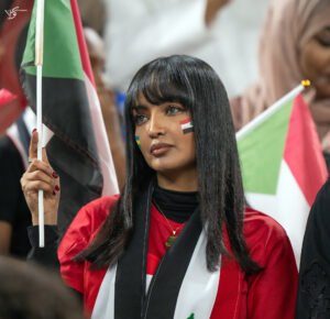 حين ينطلق النشيد السوداني، تقف المدرجات كأن قطعة من الخرطوم أو أم درمان قد انتُزعت من مكانها ووُضعت هناك في الدوحة. أصوات تختلط، رجال يلوّحون بالأعلام كما لو كانوا أطفالاً، نساء يضربن بالدفوف بإيقاع التراث، وأطفال يرفعون صور اللاعبين كأنهم أبطالٌ من أساطير بعيدة.